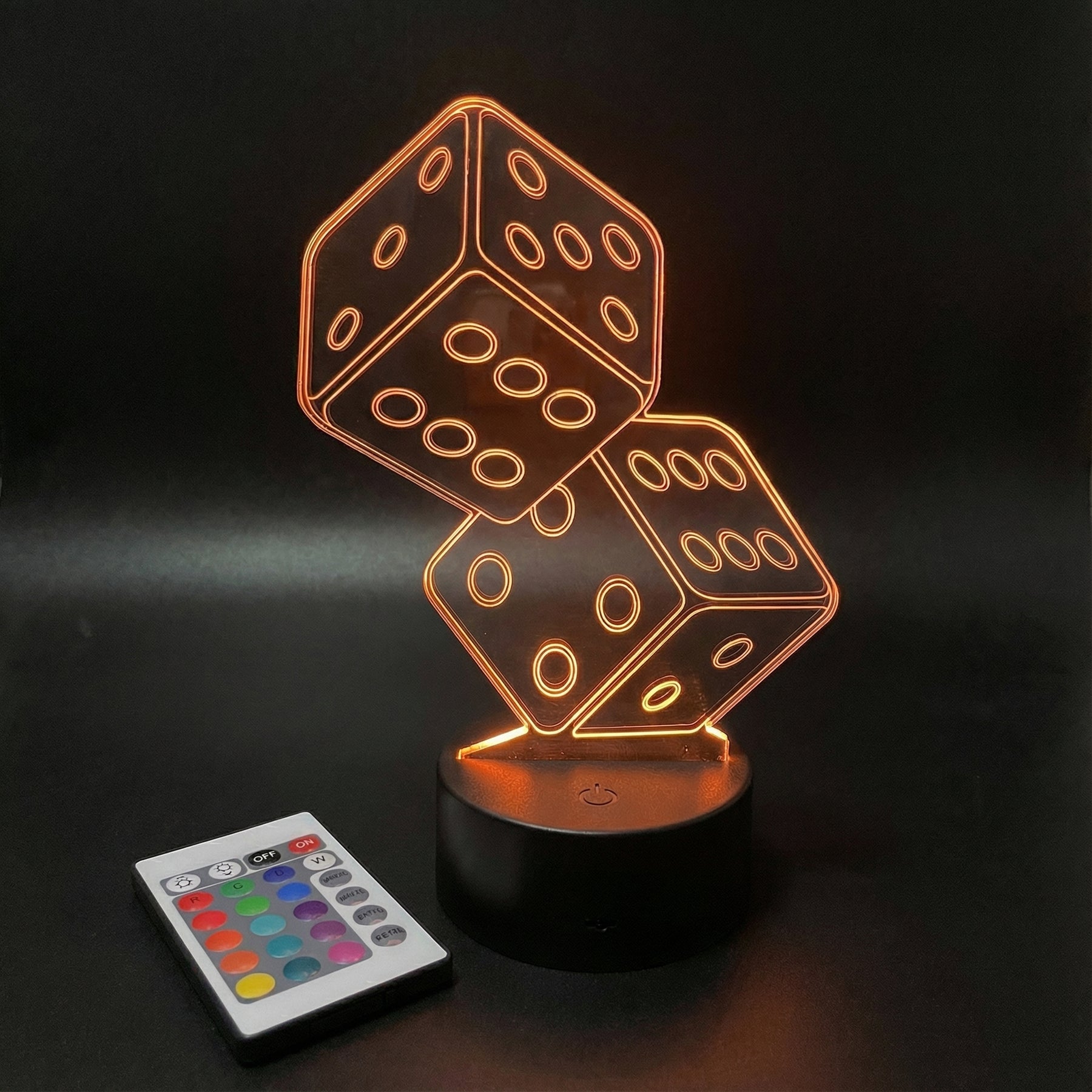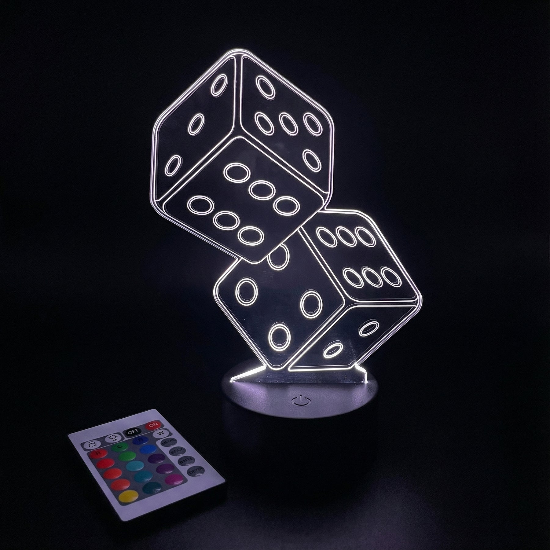 This isn't just a lamp; it's a captivating optical illusion, meticulously crafted to appear as two vibrant, floating dice, casting an ethereal glow that transforms any space.