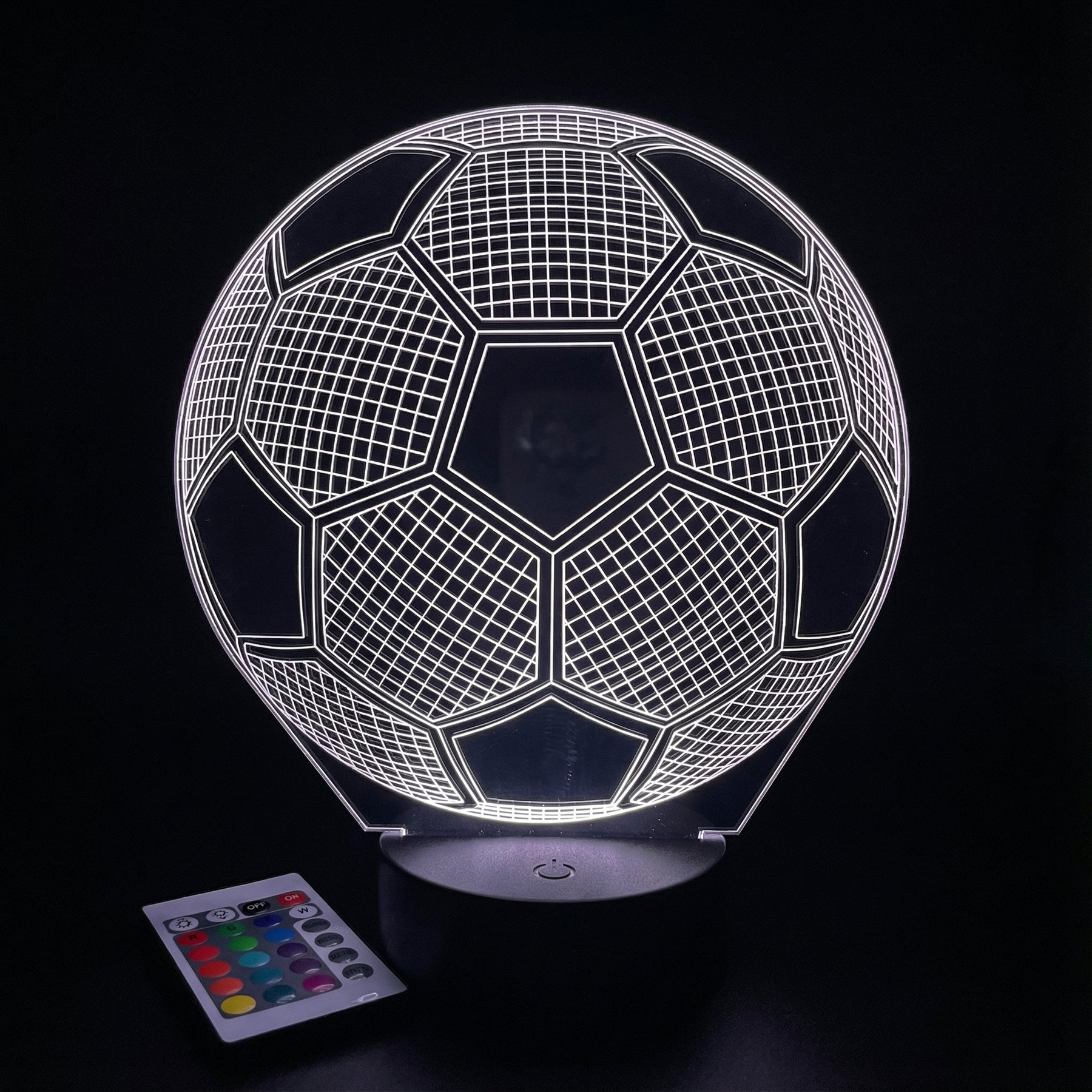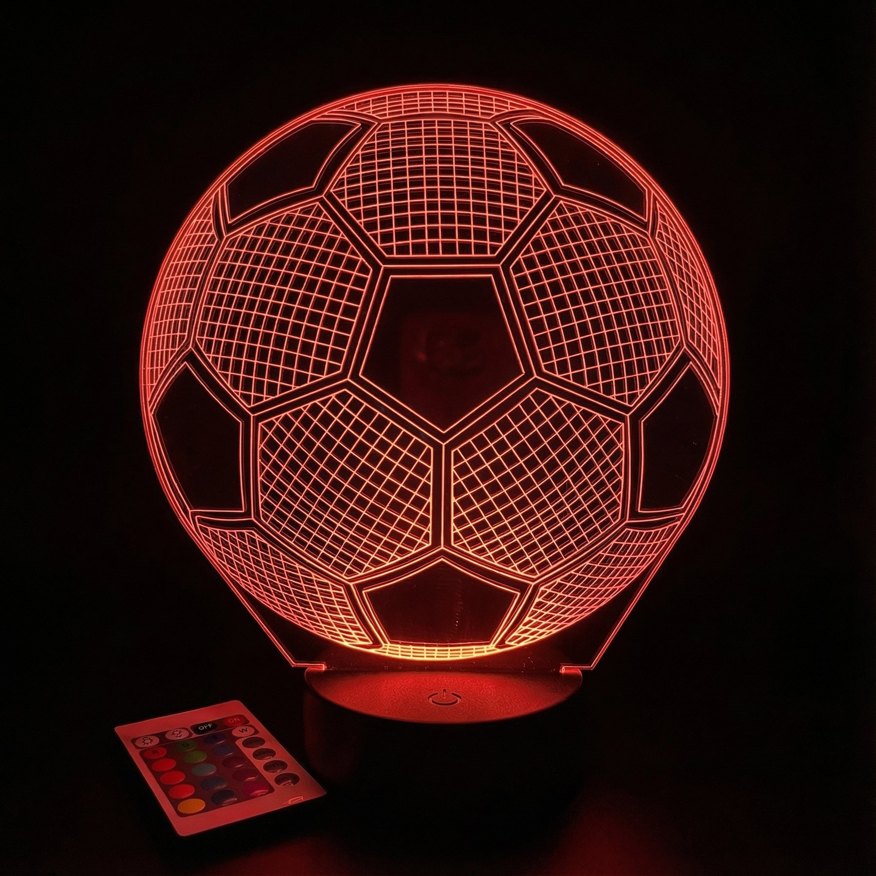 Score a goal for brilliant design and captivating ambiance with the Soccer Ball 3D Illusion LED Lamp!